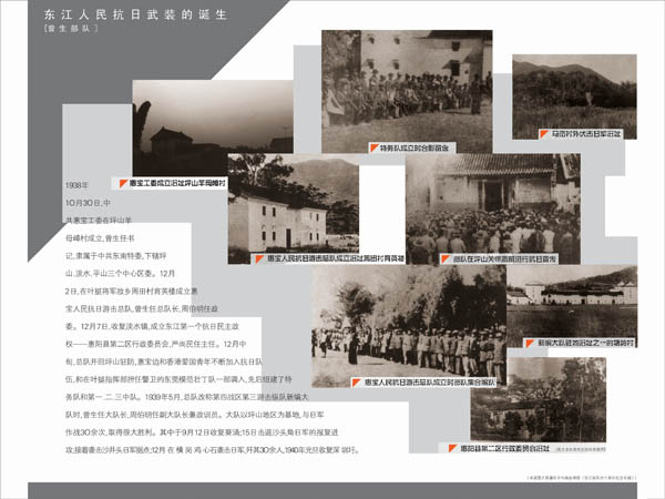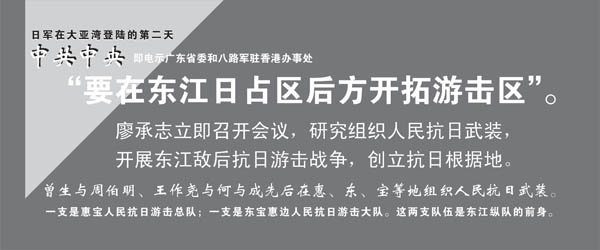 1938年10月12日,日军在大亚湾登陆,国民党守军溃逃,广州及周围各县和东江下游相继沦陷,广东抗日的重任落到了中国共产党人的肩上。13日,中共中央电示广东省委和八路军驻香港办事处:要在东江日占区后方开拓游击区。遵照指示,中共香港海员工委书记曾生在惠(阳)宝(安)地区建立了惠宝人民抗日游击总队。同时,中共东莞中心县委在东(莞)宝(安)惠(阳)边地区建立了以王作尧为大队长的东宝惠边人民抗日游击大队。曾、王两部在中共东江军委领导下,在东宝惠前线敌后开展抗日游击战争,打击日本侵略军。1940年春,国民党掀起抗战以来第一次反共高潮席卷东江,东江国民党顽固派军队包围曾、王两部。曾、干两部被迫向海陆丰地区转移,在顽军围追堵截下损失重大。
