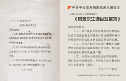 中共中央南方局周恩来电报指示,九四三年九月二十日周恩来致东江《同意东江游纵发宣言》