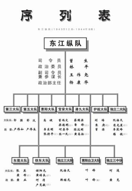 从五年来的抗日自卫斗争中,使我们全体同志一致认清:中国共产党是中华民族与中国人民的救星。我们看到中国共产党始终坚持抗战,坚持团结,坚持进步,历次制止了内战危机与投降危险。我们看到中国共产党在任何困难面前都不畏缩后退,总是有办法克服困难,向前迈进。我们东江子弟兵能够坚持敌后抗战,就是由于有共产党正确的政治主张作指导,以及全体同志共同努力与各界的援助,因此我们全体同志一致热诚的拥护中国共产党的政治主张,反对内战投降,坚持团结抗战进步的一贯政策,更一致热烈的接受与拥护中国共产党的领导。我们认为,我们广东人民抗日游击队能够获得中国共产党的领导,是我们全体同志的无比光荣,是东江同胞的无上光荣,是广东同胞的无上光荣!!!我们认为,在日寇军事进攻与政治诱降的阴谋诡计下,今后敌后的斗争必然更加残酷,我们应该增强我们的力量来保卫家乡。因此,我们成立广东人民抗日游击队东江纵队,在中国共产党领导下,为打败日本帝国主义,建军设独立自由幸福的新中国而奋斗!我们深信,我们有中国共产党的英明领导,也一定能够克服一切困难,坚持敌后的游击战争,争取最后胜利。我们的斗争并不孤立,我们不但与中国共产党八路军、新四军、各爱国党派及全国人民的斗争血肉相关,而且与国际反法西斯斗争形成一线。我们一定能够粉碎顽固派的进攻,最后将敌人赶出领土。事实证明,一切革命的新生力量一定向上发展,一切内战与反动的力量一定走向投敌与泯灭之途。我们广东人民抗日游击队过去只有两个大队,且活动范围局处一隅,但经过了几年来抗日与自卫斗争的锻炼,我们壮大了我们的队伍,在惠、东、宝的前线与敌后,驰骋纵横,且深入港九,活动于敌人心脏地带。我们的人枪不但没有减少,反而增加了十数倍。为了适应新的斗争环境,我们今天实行联合组织,统一指挥,发挥抗日更大效力,克服困难,收复国土,保护人民生命财产,达到最后胜利。